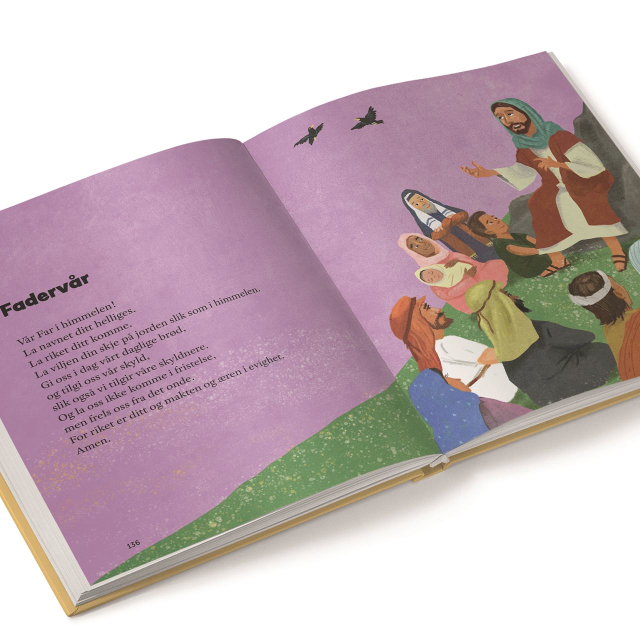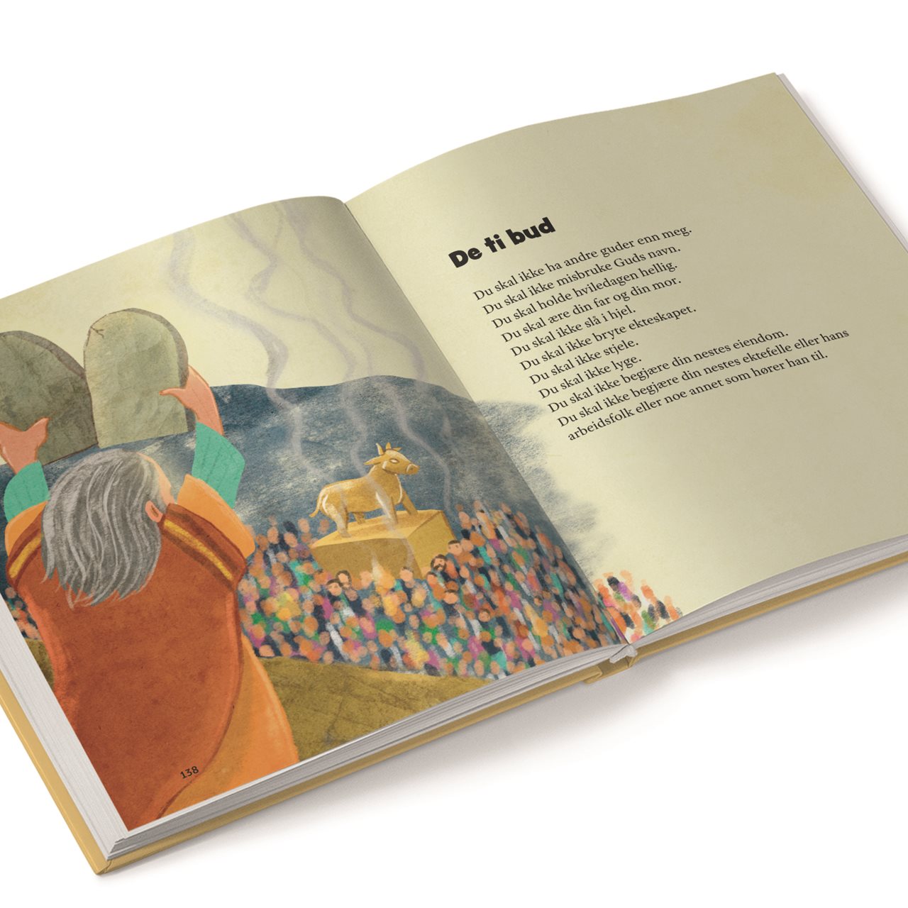 Passar for barn frå 3 år og oppover. For vaksne som får lyst til å fordjupe seg i Bibelen, er det sett inn referansar til kor ein finn originaltekstane. Boka er også gitt ut på bokmål.