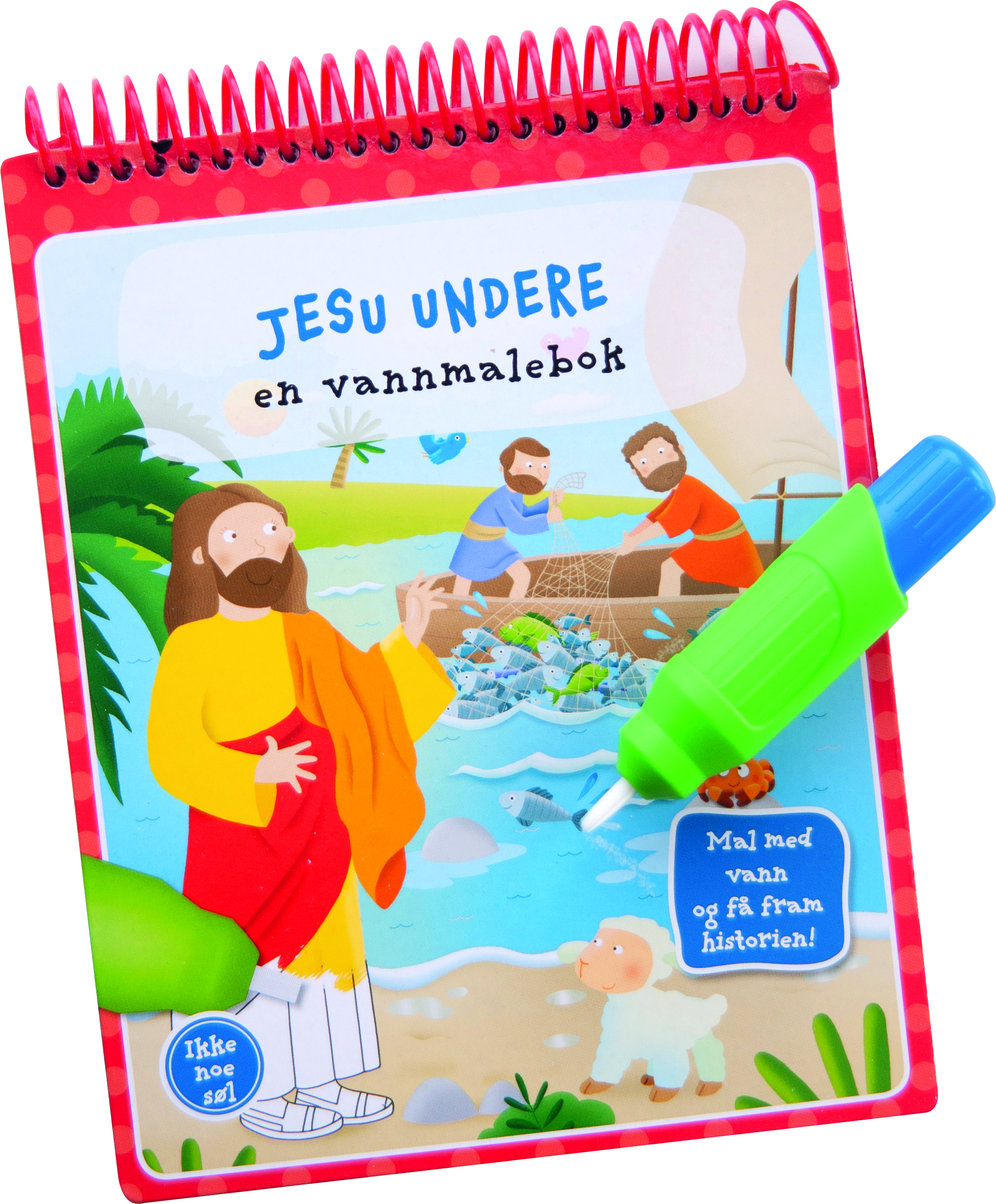 Spiralblokk med fem fortellinger om Jesu undere. Bildene kommer til syne ved at de males over med vann og forsvinner når vannet tørker. Kan males fram om og om igjen. Vannpenn følger med. Laget i solid kartong.