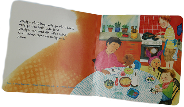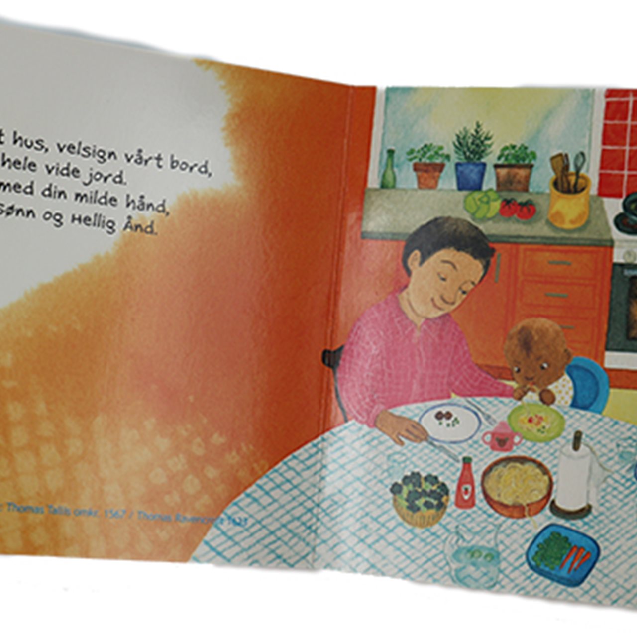 Boka inneholder syv kjente bordbønner med tekst og lyd. Lytt til bønnene – og syng gjerne med!