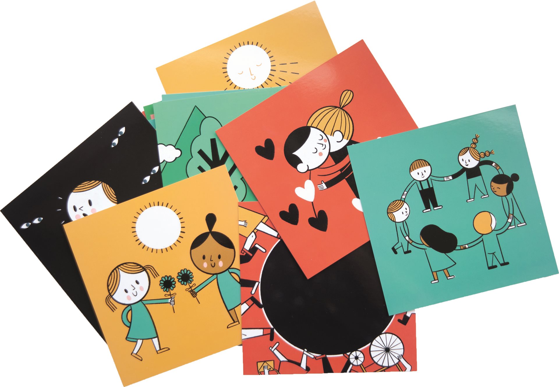 21 kort med bibelvers på den ene siden og bilde på den andre siden