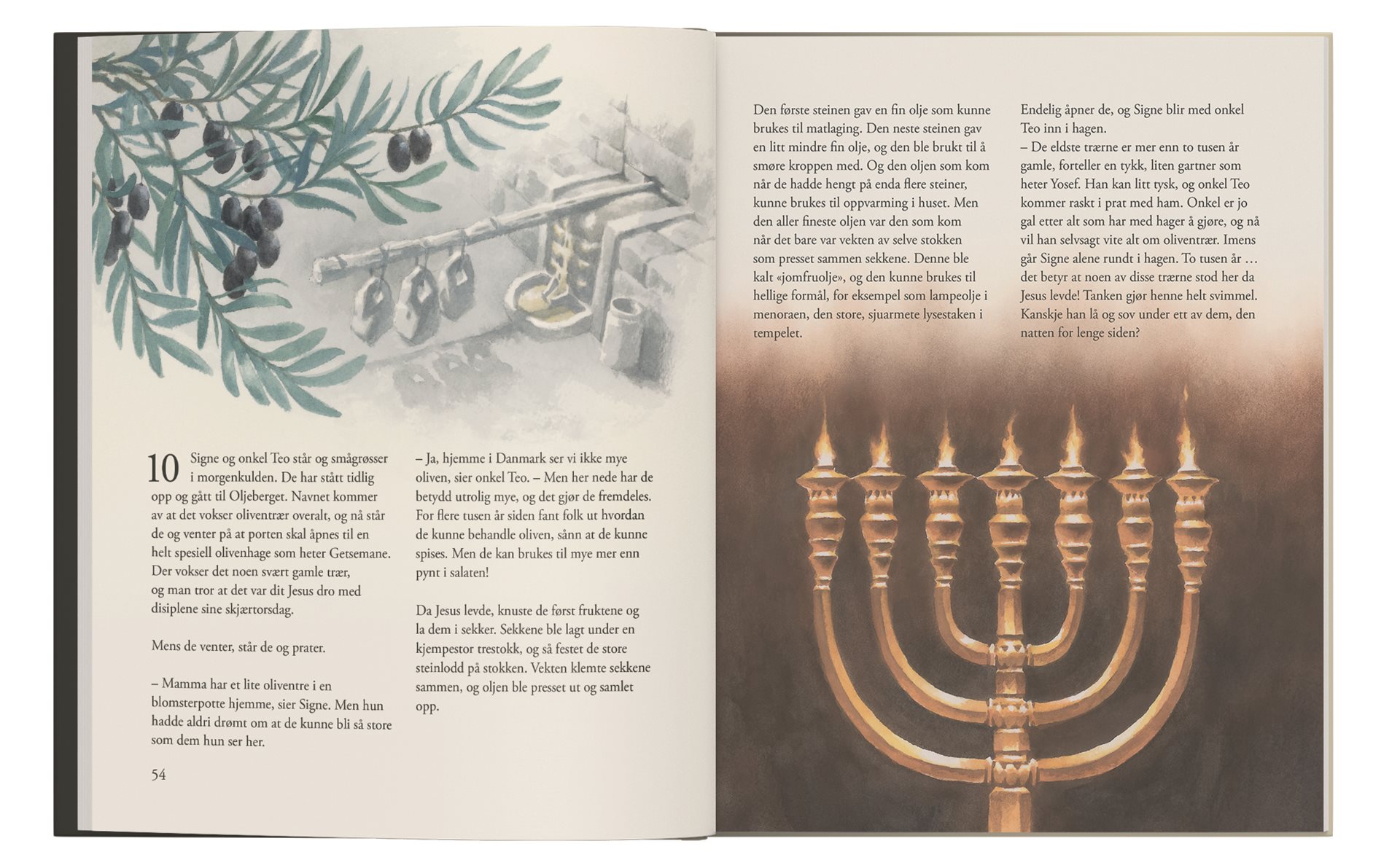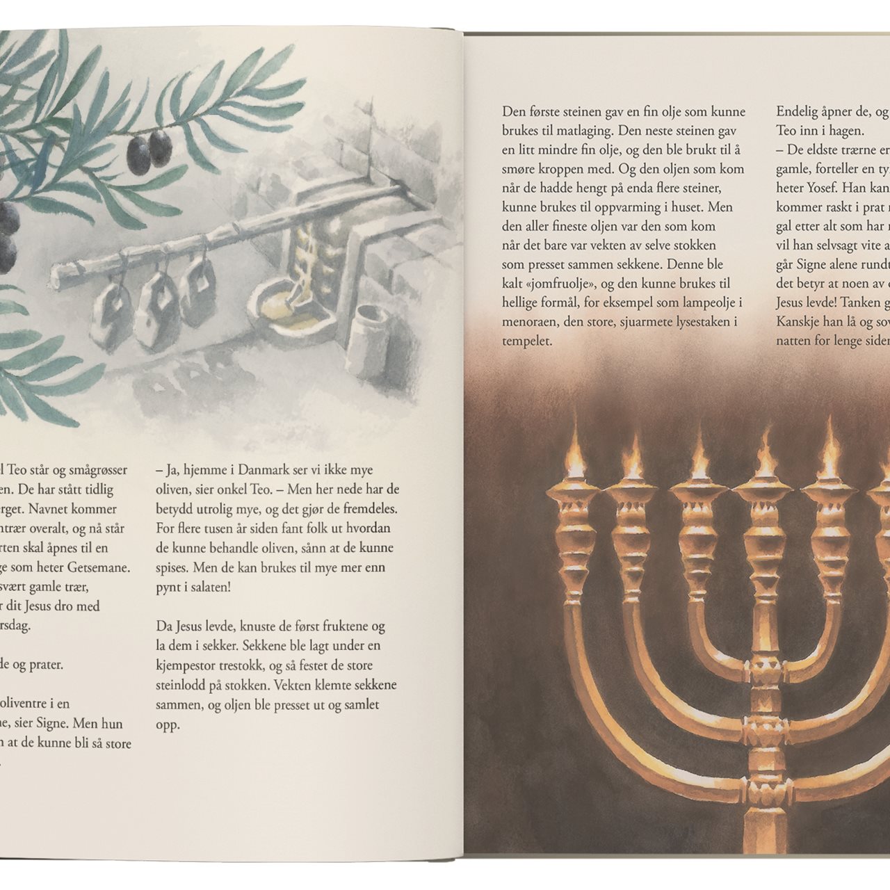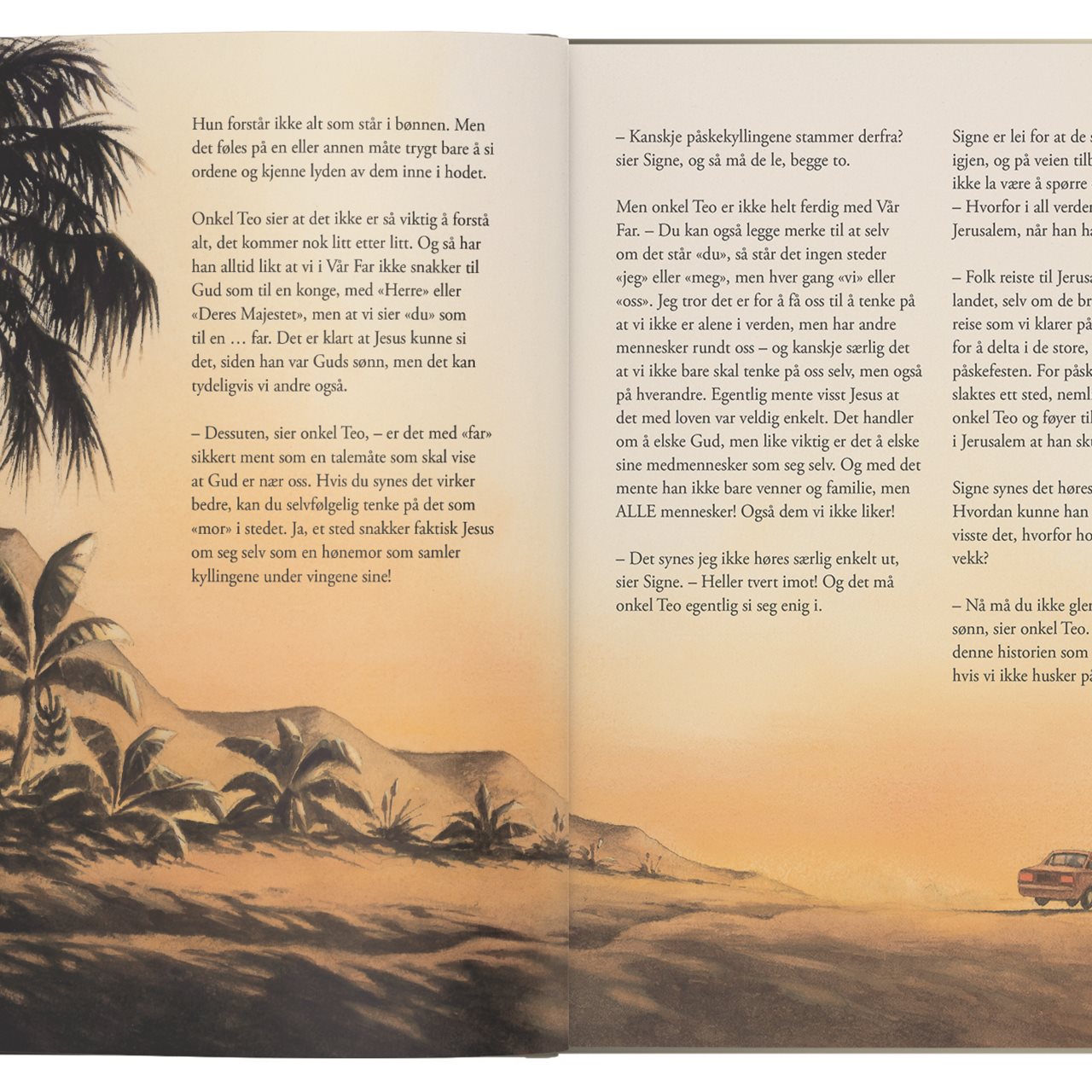 I år får Signe en helt spesiell gave av onkel Teo. «En påskereise» står det på konvolutten, og inni ligger det en flybillett til Israel. – Din gave i år er nemlig påskens historie, og hvis jeg skal fortelle den ordentlig, må vi være der alt sammen skjedde!