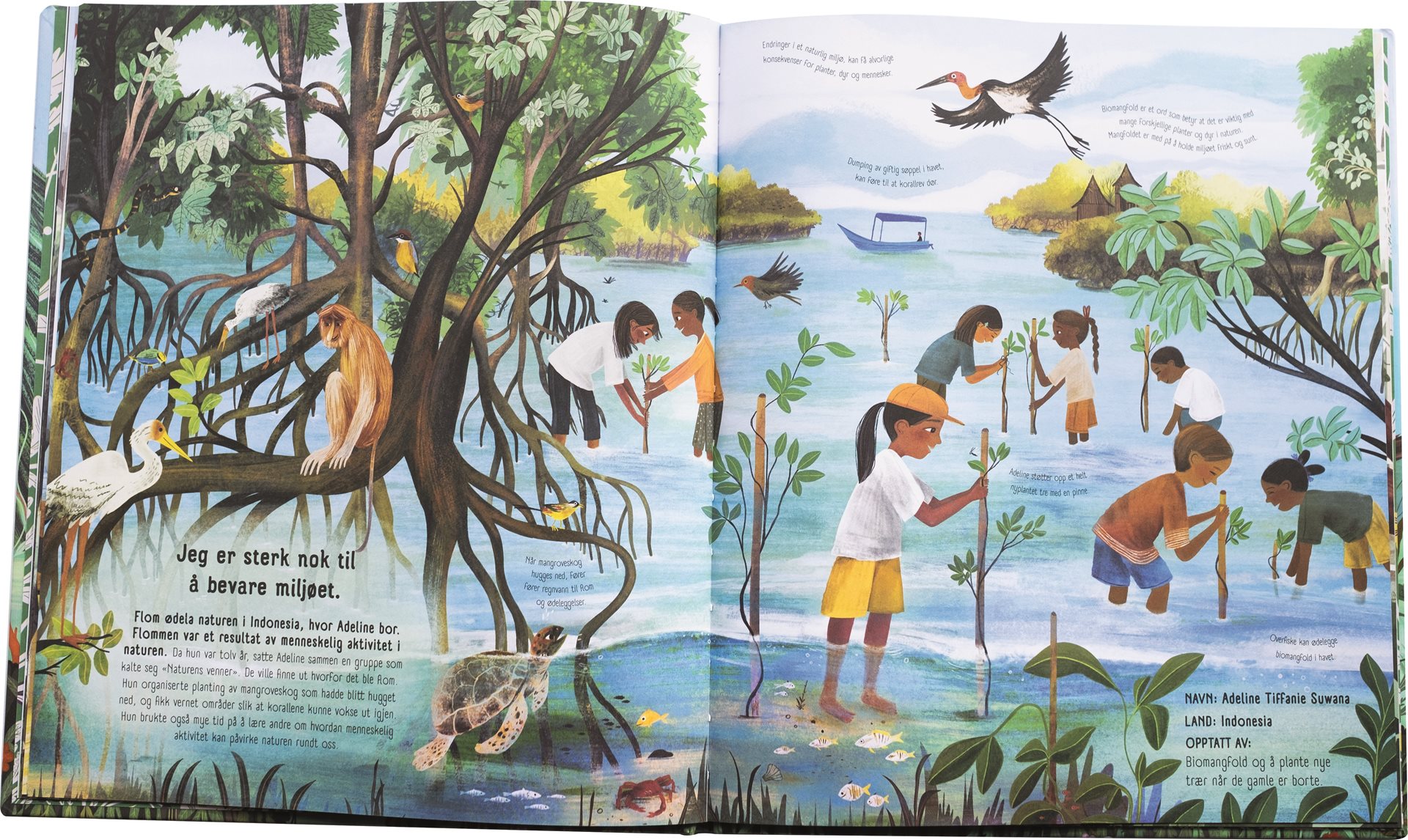 Vi møter 12 barn fra hele verden som på hvert sitt vis har satt i gang prosjekter og mobilisert til innsats. Blant annet kan du lese om treplanting, redusert biltrafikk, bedre forholdene for insekter, kompostering, m.m. Boka er rikt illustrert og full av håp! Passer for barn fra 7 år og opp.